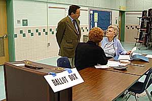 ODIHR Director Ambassador Christian Strohal (centre) at a Vienna, Virginia, polling station during the U.S. mid-term elections, 7 November 2006.