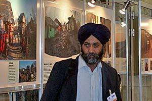 A participant at the Human Dimension Implementation Meeting looks at an exhibition on Roma housing, Warsaw, 4 October 2006.