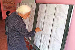 A woman checks the voter list in Kvemo Khartli during municipal elections in Georgia, 5 October 2006.