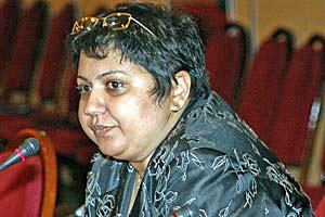 Nicoleta Bitu, senior consultant of the Open Society Institute- Joint Roma Women's Initiative, moderating a side event on issues affecting Roma women, Warsaw, 4 October 2006.