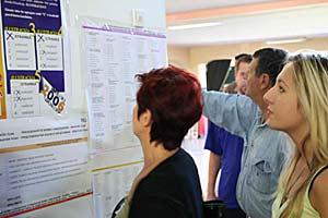 Voters study election lists at their polling station in Sarajevo during the 1 October 2006 general elections in Bosnia and Herzegovina.