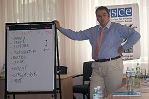 TV journalist Yevgeny Glibovytsky was one of the trainers at a seminar on improving access to information organized by the OSCE Centre in Almaty and the Office of the Representative on Freedom of the Media, in Borovoye in northern Kazakhstan, 8 Sept 2006.