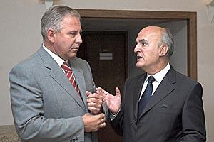 Ambassador Jorge Fuentes (right), Head of the OSCE Mission to Croatia, with Croatian Prime Minister Ivo Sanader in Zagreb, 11 September 2006.