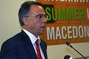 Ambassador Carlos Pais, Head of OSCE Mission to Skopje, speaking at the launch of the OSCE-sponsored International Gender Summer School at SEE University in Tetovo, 10 July 2006.