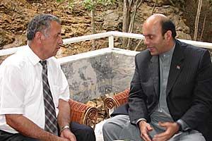 The Tajik Minister of Environment Abduvohit Karimov (left) speaks with the Head of the Environmental Department of Afghanistan Mustapha Zaher, in Dushanbe, 14 July 2006.