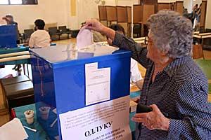 A voter casts her ballot during a referendum on the future state-status of Montenegro, in the town of Cetinje, 21 May 2006.