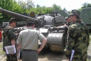 Inspectors from Bosnia and Herzegovina inspect a Main Battle Tank T-55 at the 125th Motorized Brigade in Kruševac, Serbia and Montenegro, May 2006.