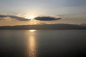Sunset over Lake Prespa in the former Yugoslav Republic of Macedonia, 14 April 2006.