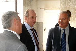 Colonel Artashes Andreasyan, Head of the Police Training Centre (left), explains details of the renovation to Amb. Vladimir Pryakhin, Head of the OSCE Office in Yerevan (centre) and Major General Ararat Mahtesyan, First Deputy Head of the Armenian Police.