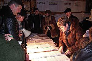 Officials count ballots at a polling station in Lviv region, in western Ukraine, during the March 2006 parliamentary elections.