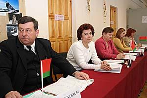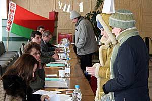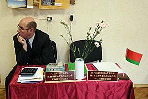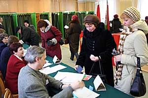 Residents of the capital, Minsk, registering to receive ballots at a polling station during the 19 March 2006 presidential election in Belarus.