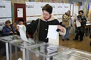 A woman casts her vote during the Ukrainian parliamentary elections, in Kyiv, 26 March 2006.