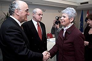 Head of Mission Jorge Fuentes (left), Deputy Prime Minister Jandranka Kosor (right) and President of the Council for National Minorities Aleksandar Tolnauer at a seminar on national minorities, Zagreb, 17 March 2006.