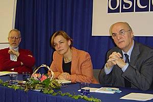 Vesna Pusic (centre), Croatian Peoples' Party President and Deputy Sabor Speaker, with Head of the OSCE Mission to Croatia Jorge Fuentes (right) and Deputy Head Robert W. Becker, Zagreb, 27 January 2006.