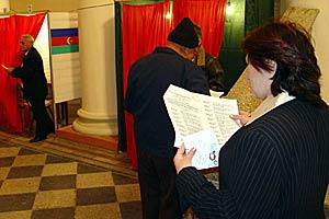 Voters in Baku wait to cast their ballots during the 6 November 2005 parliamentary elections in Azerbaijan.