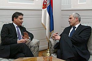 Head of the OSCE Mission to Serbia and Montenegro Maurizio Massari (left) talks with President of Serbia Boris Tadic, 13 December 2005