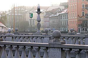 The triple bridge (Tromostovje) in the heart of Ljubljana, 4 December 2005.