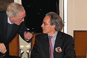 Zagreb Mayor Milan Bandic (centre) discusses his strategy for the further development of Croatia's capital with Head of Mission Jorge Fuentes (right), 23 November 2005.