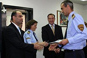 New human rights training co-ordinators for the Ministry of Interior receive their credentials after completing an OSCE-sponsored training in Skopje, 2 November 2005.