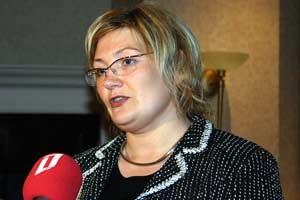 Tiina Ilsen, Head of ODIHR's Gender Unit, giving an interview on the sidelines of a meeting of the Georgian Women's NGO Coalition, in Tbilisi, 2 November 2005.