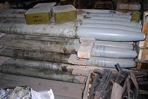 Surplus ammunition in temporary storage before destruction at a location near Lohur, Tajikistan, June 2005.