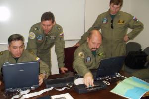 Members of a Russian observation mission that flew over the United States in July 2005 under the Open Skies Treaty.