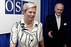 Croatia's Minister of Foreign Affairs and European Integration, Kolinda Grabar-Kitarovic, was the guest of the Head of the OSCE Mission to Croatia, Ambassador Jorge Fuentes, at the Mission's headquarters in Zagreb, 19 July 2005.