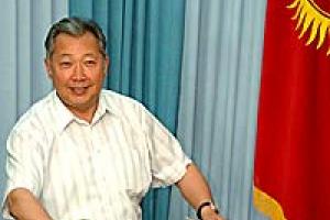 Presidential candidate Kurmanbek Bakiev, casting his ballot at a polling station in Bishkek during the presidential election in Kyrgyzstan, 10 July 2005.