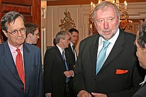 OSCE Chairman-in-Office Dimitrij Rupel (right) and OSCE Secretary General Marc Perrin de Brichambaut (left) at the State Department in Washington, D.C. on 1 July 2005.