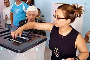 A voter casts her ballot during parliamentary elections in Albania, 3 July 2005.
