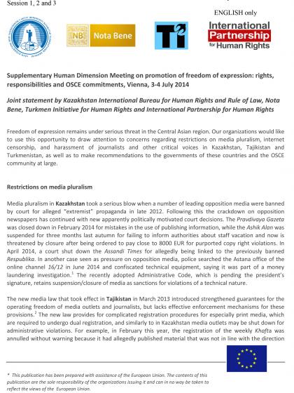 Session 1, 2, 3, Joint Statement by Kazakhstan International Bureau for Human Rights and Rule of Law, Nota Bene, Turkmen Initiative for Human Rights and International Partnership for Human Rights