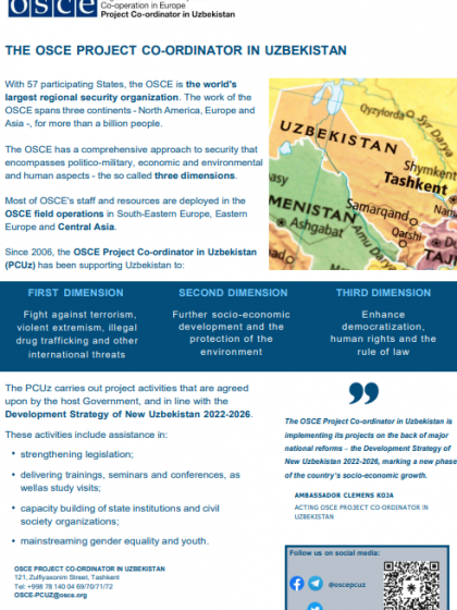 Info sheet of the OSCE Project Co-ordinator in Uzbekistan