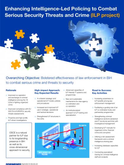 Overarching Objective: Bolstered effectiveness of law enforcement in BiH to combat serious crime and threats to security. Improved co-operation and exchange of criminal intelligence among the 16 LEAs in fighting organized crime. Improved compliance with EU SOCTA & EUROPOL security threats assessments. Proactive and high-level ILP-driven investigations.