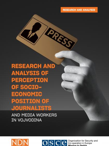 This research was implemented by the Independent Journalists' Association of Vojvodina (NDNV) with the OSCE Mission to Serbia's support. Paying particular attention to the goals of the Strategy of Development of System of Public Information in the Republic of Serbia (2020-2025), the research was conducted in order to better understand socio-economic position and working status of journalists and media workers in Vojvodina region, with special focus on position of female journalists, journalists working in minority language media, as well as freelancers and other journalists without permanent employment status.