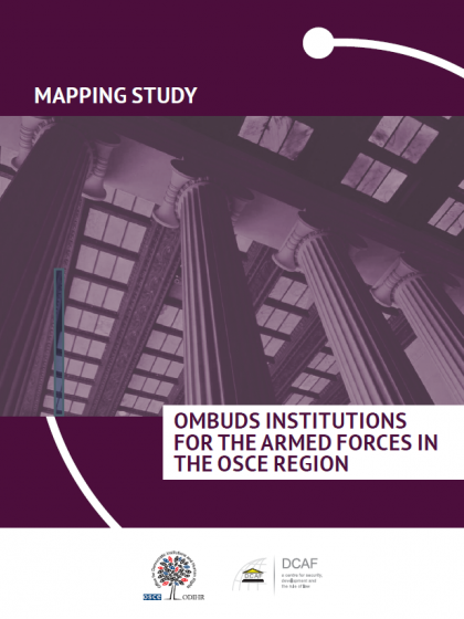 This publication has been developed in cooperation between DCAF and the OSCE Office for Democratic Institutions and Human Rights (ODIHR) as part of an ongoing research project on ombuds institutions for the armed forces. It is the result of an effort to conceptualize and examine issues and challenges related to oversight of the armed forces and the promotion of human rights based on the feedback provided by the institutions themselves. It maps prominent capacity development needs of ombuds institutions in the OSCE region, and offers best practices through which these needs can be addressed. The study also examines different models, functions and approaches of ombuds institutions for the armed forces in the OSCE region. The mapping study will hopefully help states that wish to establish ombuds institutions by identifying the best format for doing so but it can also support existing ombuds institutions, scholars, policy-makers and armed forces commanders by offering a reference instrument on the current state of ombuds institutions in the OSCE region.