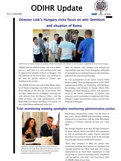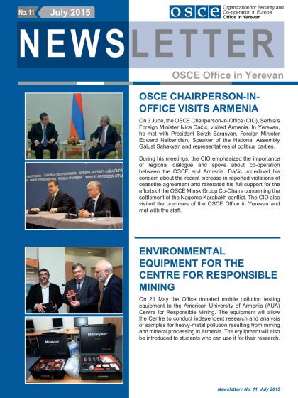 The Newsletter covers the activities of the OSCE Office in Yerevan for the period of 1 January until 1 July 2015