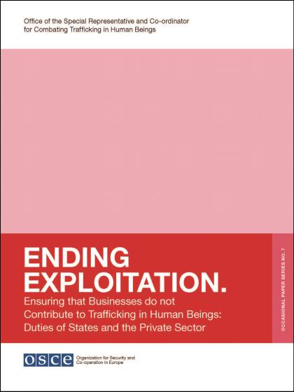 This Occasional Paper, the seventh in a series of Occasional Papers published by OSCE Office of the Special Representative and Co-ordinator for Combating Trafficking in Human Beings, outlines the measures that businesses can take to ensure that trafficking in human beings does not occur in their workplaces or those of their suppliers (i.e., other businesses that sell products or services to them). It also reviews the obligations of the OSCE's participating States to regulate business activities and to enable businesses to take appropriate action to stop human trafficking from occurring. It provides a series of recommendations for OSCE participating States.