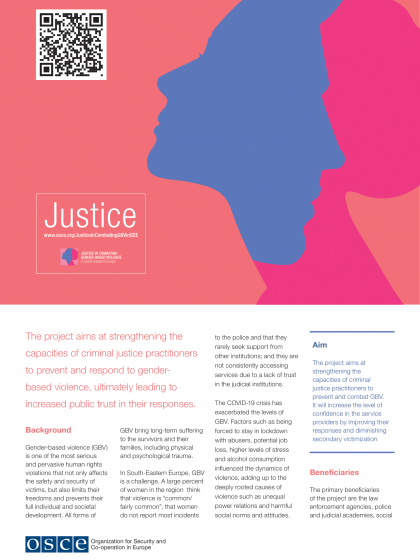 Gender-based violence (GBV) is one of the most serious and pervasive human rights violations that not only affects the safety and security of victims, but also limits their freedoms and prevents their full individual and societal development. All forms of GBV bring long-term suffering to the survivors and their families, including physical and psychological trauma. The project aims at strengthening the capacities of criminal justice practitioners to prevent and respond to gender- based violence, ultimately leading to increased public trust in their responses.