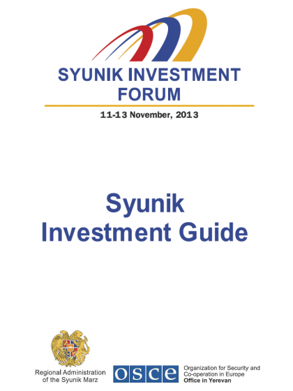 The guide was prepared and shared with participants of the Syunik Investment Forum on 11-13 November 2013 organized by the OSCE programme implementation presence in Kapan (Syunik) and the local administration. Markets for Meghri, World Vision Armenia, Kapan Area Development Foundation and Kapan Municipality also contributed to the guide development.