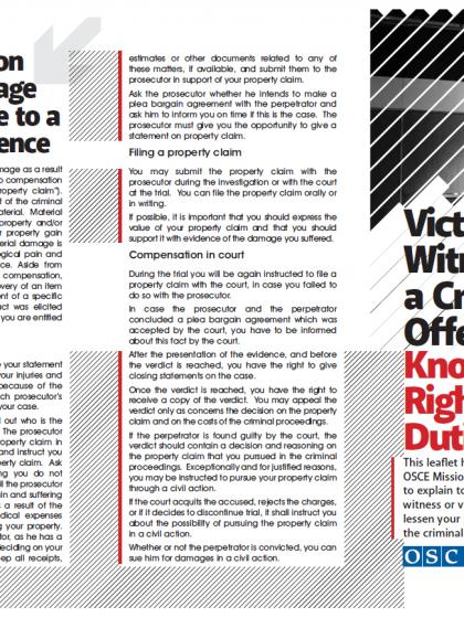 This leaflet has been developed by the OSCE Mission to Bosnia and Herzegovina to explain to you what to expect as a witness or victim of a crime and thus lessen your inconvenience throughout the criminal proceedings.