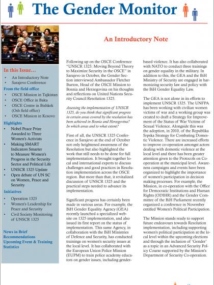 The sixth issue of the e-newsletter issued by the Gender Section of the OSCE on a quarterly basis.