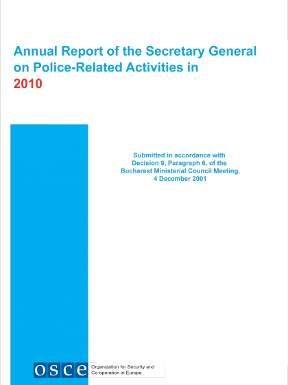 This report provides information about the police-related activities of the SPMU, as well as other cross-dimensional police-related activities of other thematic units in the Secretariat and OSCE Institutions. It also gives an overview of the capacity- and institution-building activities undertaken by the OSCE field operations in support of their respective host governments.