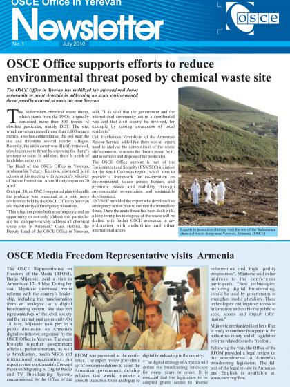 This first issue of the Office in Yerevan Newsletter covers its activities in the first half of 2010. It is published on the occasion of the Office's 10-year anniversary.