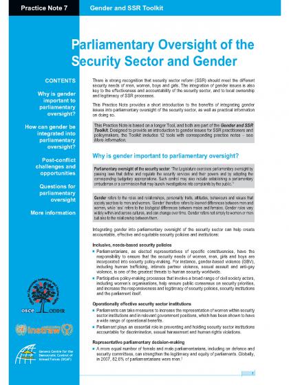 This Practice Note provides a short introduction to the benefits of integrating gender issues into parliamentary oversight of the security sector, as well as practical information on doing so.