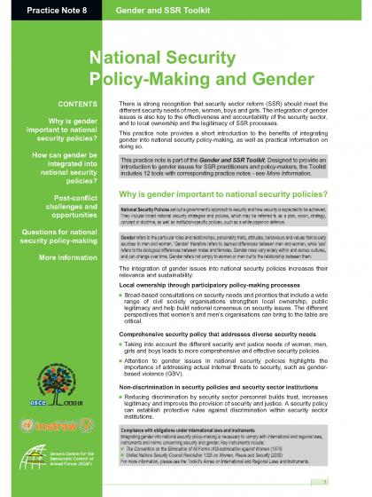 This practice note provides a short introduction to the benefits of integrating gender into national security policy-making, as well as practical information on doing so.