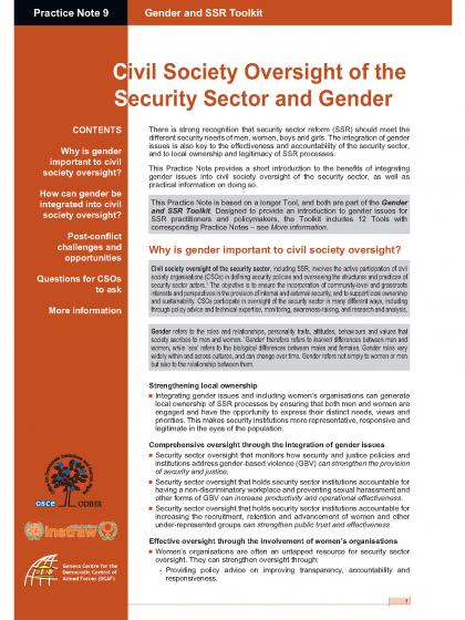 Gender and Security Sector Reform Toolkit- Tool 9: Civil Society Oversight of the Security Sector and Gender