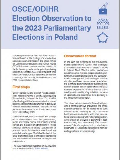 This factsheet explains the purpose of the Limited Election Observation Mission to Poland's 2023 Parliamentary Elections.
