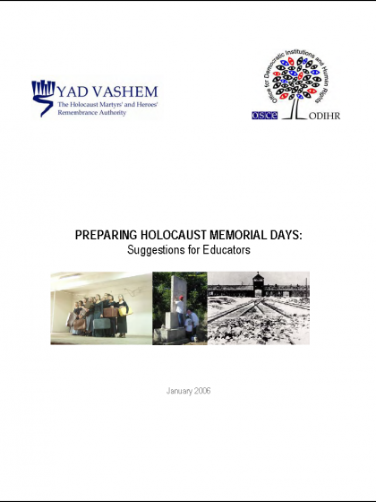 These guidelines on preparing Holocaust memorial days have been developed for educators teaching high-school age students in the participating States of the Organization for Security and Co-operation in Europe (OSCE), highlighting suggestions on how to plan commemoration activities connected with annual Holocaust Remembrance Days.