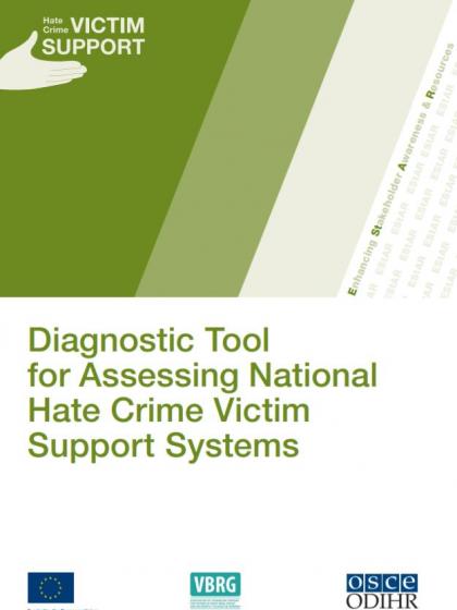 The Diagnostic Tool is a practical tool for assessing shortcomings and strengths in national hate crime victim support structures and services. The primary purpose of the Tool is to enable hate crime victim support practitioners, officials, activists and policymakers to identify areas in their national systems that require improvement to enhance protection and support for victims of hate crime.