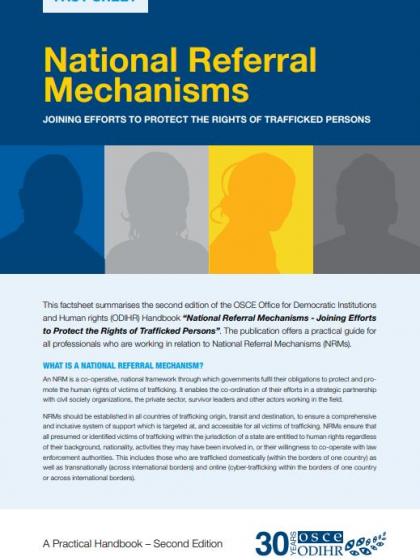 This factsheet summarises the second edition of the OSCE Office for Democratic Institutions and Human Rights (ODIHR) Handbook “National Referral Mechanisms- Joining Efforts to Protect the Rights of Trafficked Persons”.